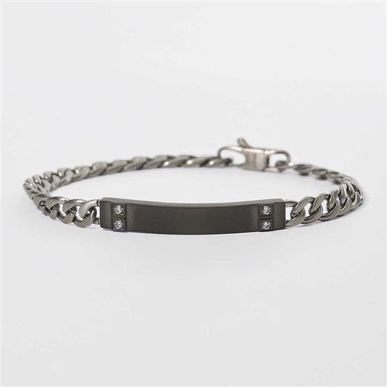 Bracciale Da Uomo Di 2Jewels Della Collezione Herby. Bracciale In Acciaio 316L Con Catena Groumette Larghezza 6 Mm, Piastra 40X6.40 Mm Con Pvd Gun Metal E Zirconi Bianchi Ø 2 Mm. Lunghezza Cm 21.