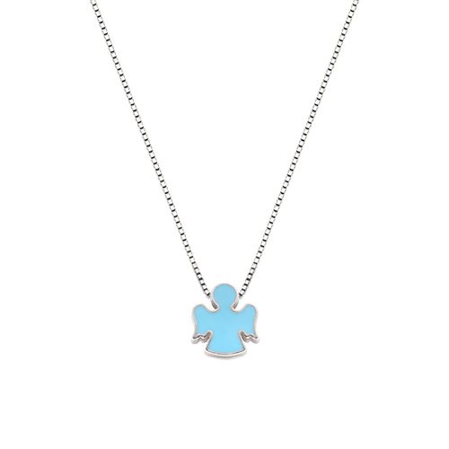 Collana in AG925 e smalto azzurro - Rodio - (Lungh. 34 + 2 cm)