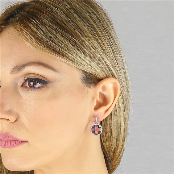 Orecchini Da Donna Di Boccadamo Della Collezione Sharada Della Linea Mediterranea. Orecchini In Bronzo Con Cristallo Color Ametista Pendente Decorato Da Zirconi. Materiale: Bronzo. Produzione: Realizzato In Italia. Misure: Lunghezza Cm 2. Dimensione: Diametro Cristallo Cm 1,5. Chiusura: A Farfalla.