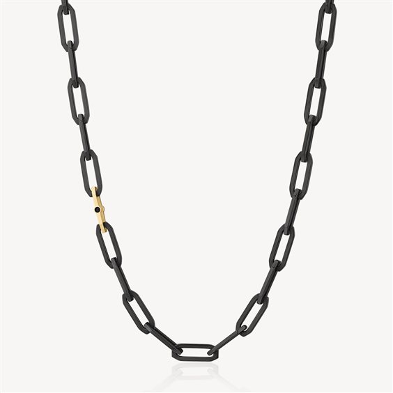 collana lunga in pvd nero e maglia doratacon doppio zircone nero. lunghezza regolabile con anelli finali.