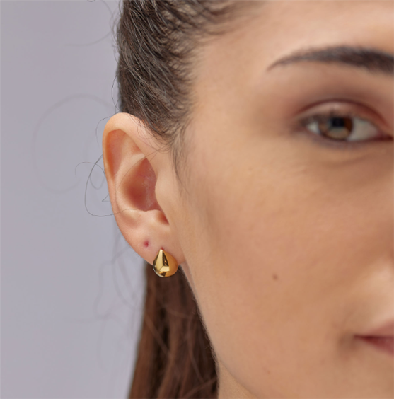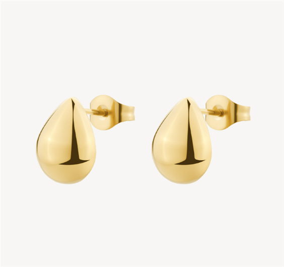 Orecchini a lobo in acciaio 316L e finitura pvd oro 14K a forma di goccia.