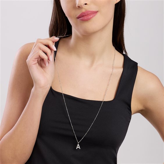 Ciondolo in acciaio 316L lettera "A". Dimensioni: ciondolo 11.3x13.5 mm