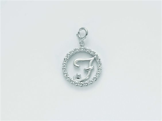 Charm ideato e realizzato da Miluna, ideale per personalizzare bracciali o collane con una o più iniziali. Si tratta di un gioiello femmnile. Il charm Miluna PFD857 è il regalo ideale per la propria fidanzata. Realizzato in argento 925% ed impreziosito da ventitre topazi bianchi ha un diametro di 1,5 centimetri.