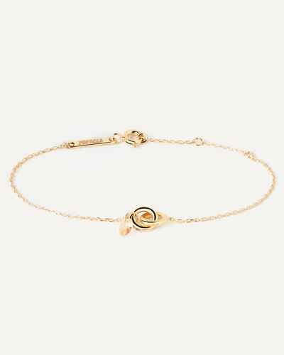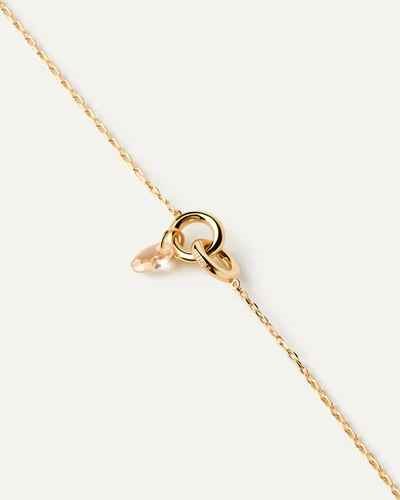 BRACCIALE LILY PESCA Materiale: argento sterling Finitura: placcatura in oro 18k Pietre: zirconi pesca Lunghezza della catena: chiusura regolabile da 150 cm a 180 cm Dimensione della pietra: 6 mm Peso: 1,55 g