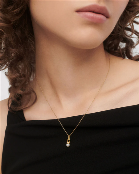 Materiale: Argento sterling Finitura: Placcatura in Oro 18K Pietre: Perla coltivati d'acqua dolce trattata Dimensione del ciondolo: 4,90 mm Peso: 10,60 g