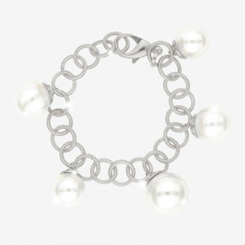 BRACCIALE IN BRONZO CON PVD BIANCO E PERLE DI DIAMETRO 14-16-17 MM