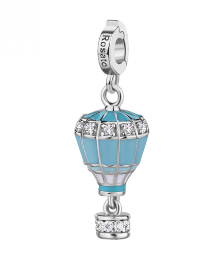Charm in argento 925‰ a forma di mongolfiera, smalti colorati, 18 cubic zirconia bianchi