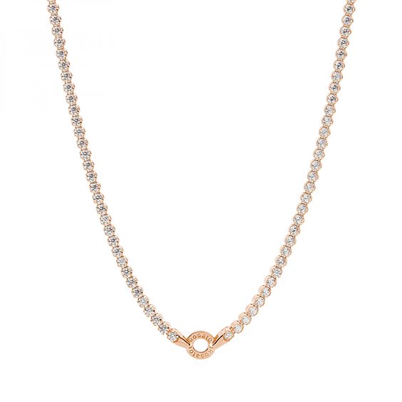 Collana corta tennis in argento 925‰, placcatura oro rosa, cubic zirconia bianchi, personalizzabile con un charm