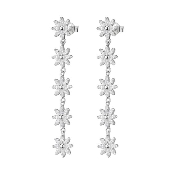 Orecchini pendenti fiori in argento 925‰, 80 cubic zirconia bianchi