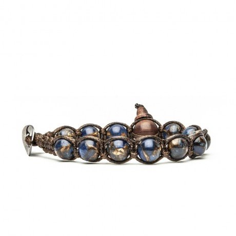 In Tibet i gioielli hanno un forte valore simbolico e tramandano valori culturali e religiosi antichissimi. Nella tradizione buddhista le gemme e i gioielli servono come metafore per gli ideali della fede ed esprimono misteriose condizioni spirituali e attributi interiori nascosti. Tamashii (o Shamballa) è un bracciale utilizzato dai monaci tibetani per favorire la meditazione, per le pratiche religiose e come talismano. Infatti Tamashii significa “anima” e il termine deriva da 'tama' che significa “gioiello”, quindi “gioiello dell’anima”. Chi lo indossa persegue un ideale di pace e di amore verso se stesso e verso il mondo, il bracciale aiuta a proteggere la sua anima, a farla crescere e farle trovare un ruolo ed un senso all'interno della vita. Prodotto realizzato in Tibet e benedetto da monaci buddisti. Pietra di questo tamashii è quarzo blu e oro a mosaico. Ogni bracciale è confezionato all'interno del packaging originale Tamashii® con certificato di autenticità e garanzia.