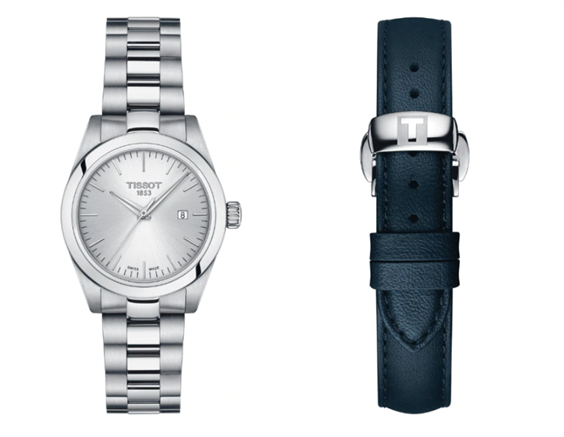 L'orologio e' fornito di un cinturino di ricambio in pelle di colore blu.